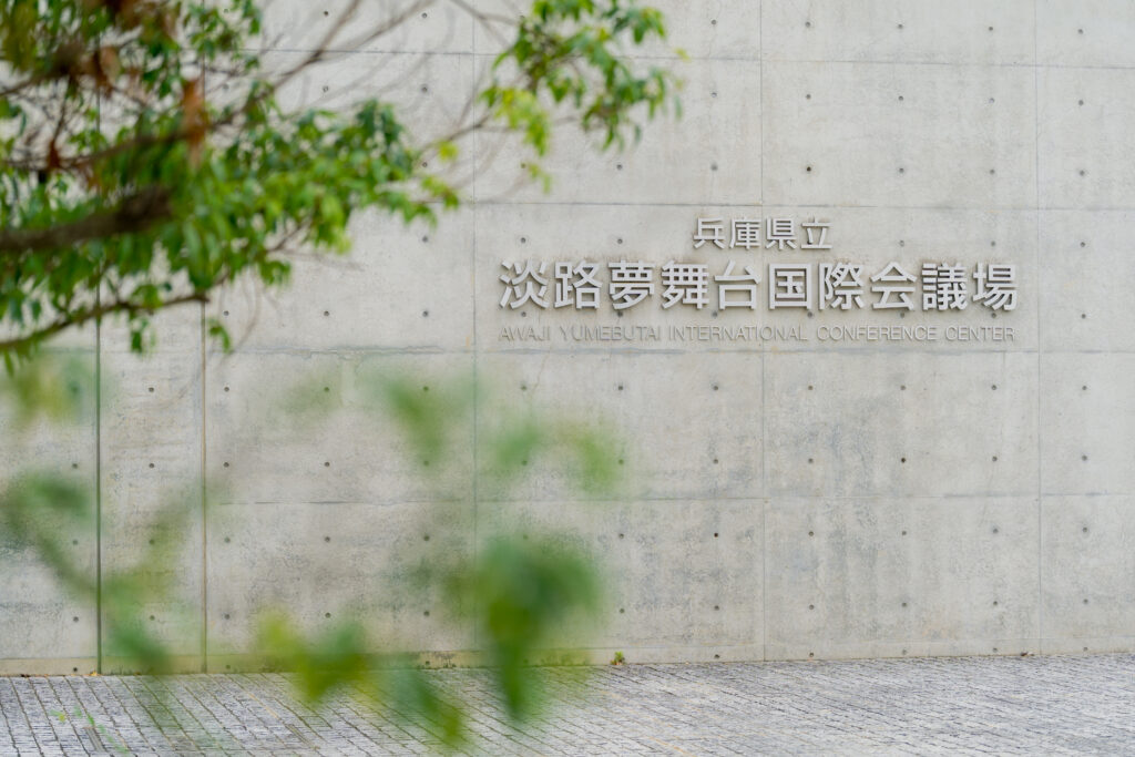空と海に囲まれた淡路夢舞台国際会議場にて、